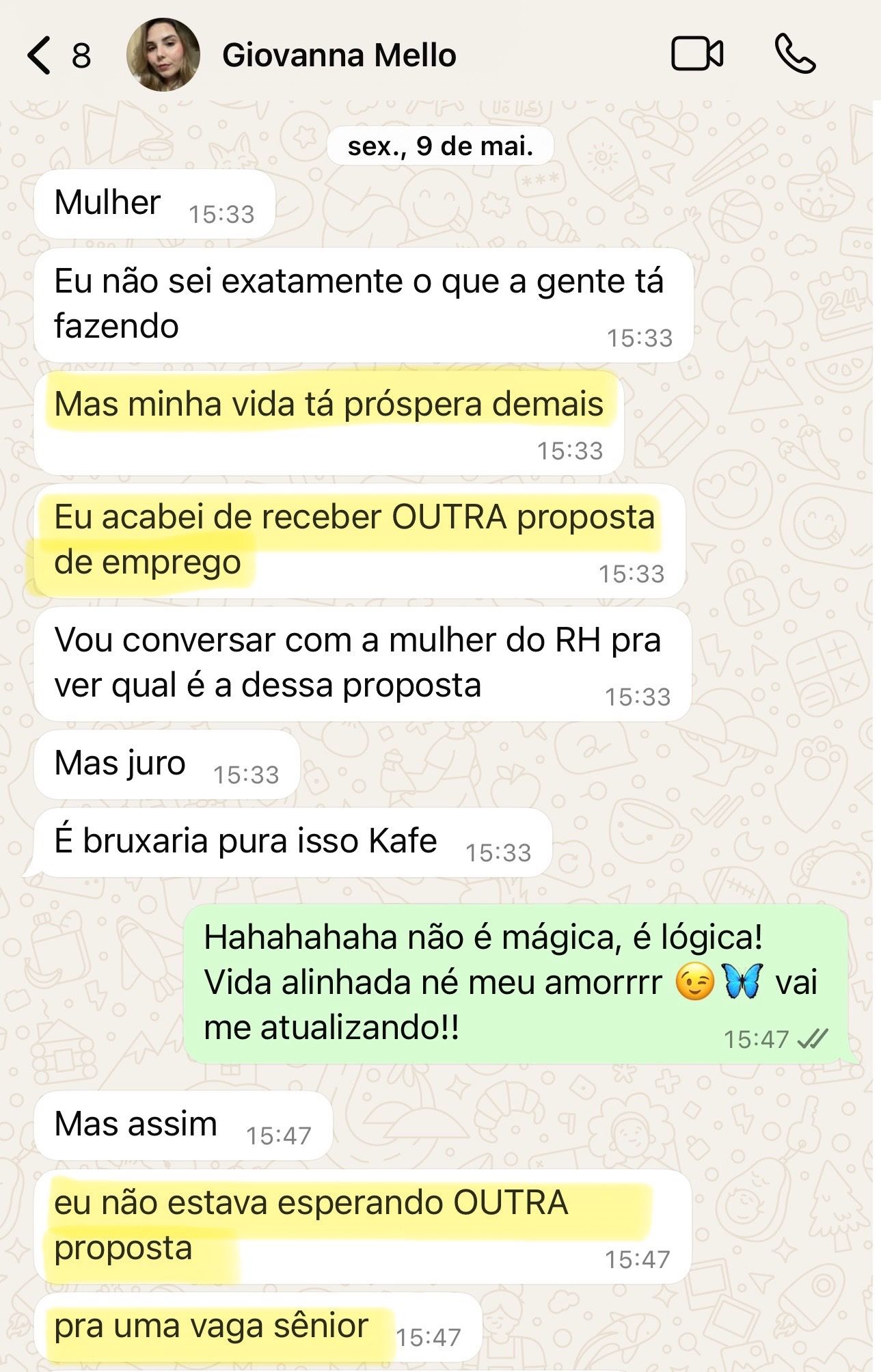 “Minha vida tá próspera demais. Acabei de receber outra proposta de emprego para uma vaga sênior”