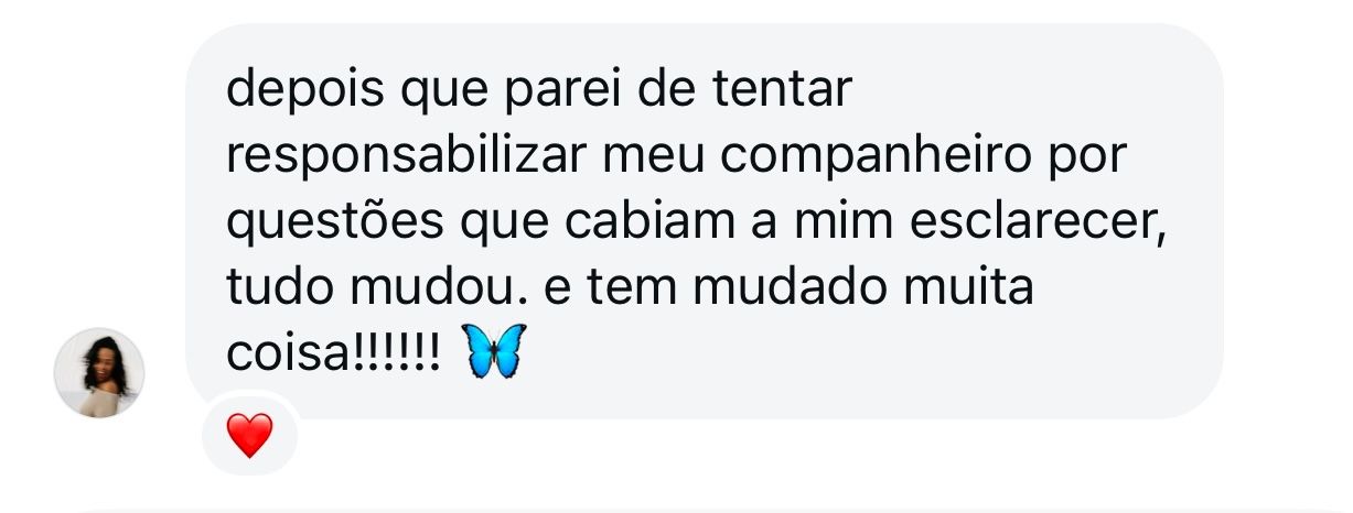 "Depois que parei de responsabilizar meu companheiro, tudo mudou!"