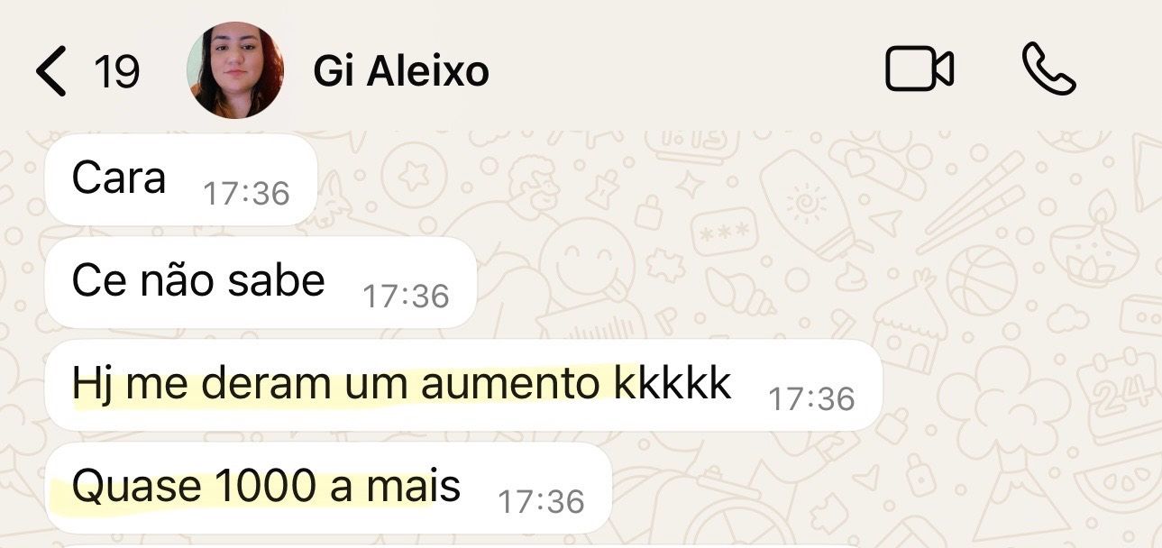 "Hoje me deram um aumento, quase mil reais a mais"
