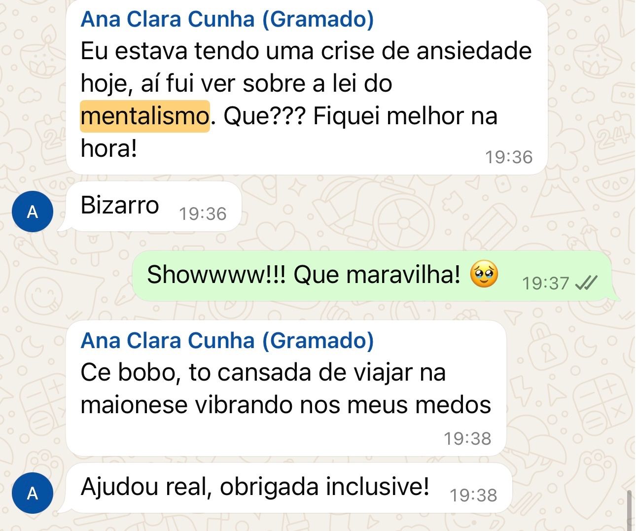 "Estava tendo uma crise de ansiedade e fui ver a Lei do Mentalismo. Fiquei melhor na hora!"