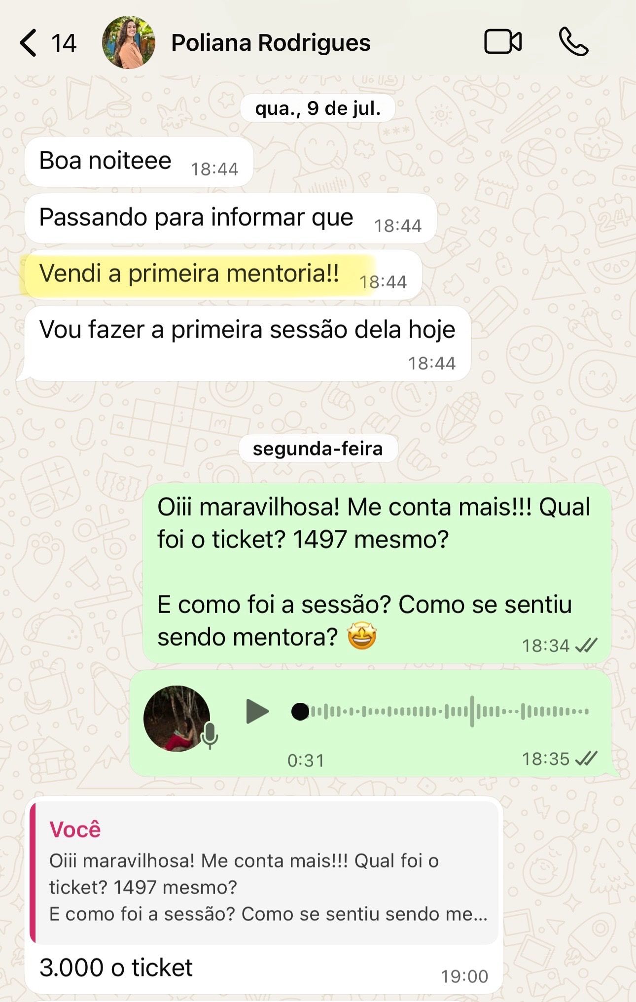 “Vendi minha primeira mentoria a 3 mil reais”