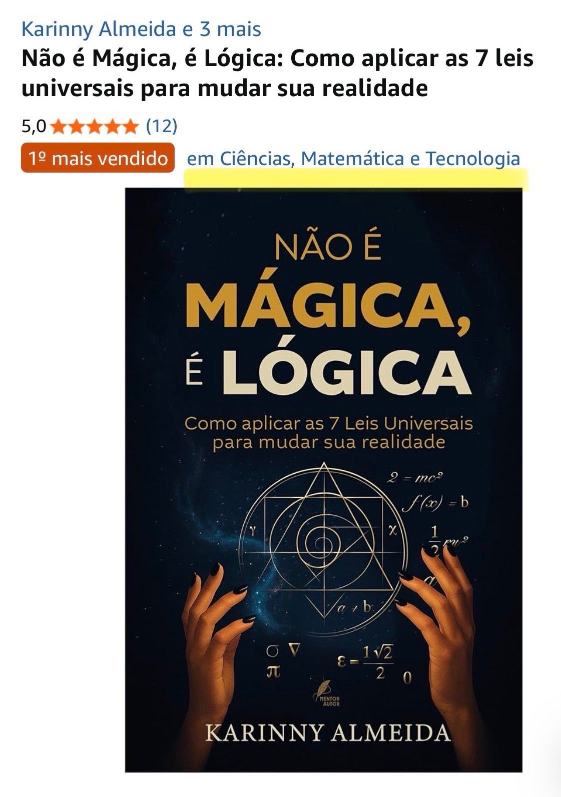 E está registrada no livro 'Não é mágica, é lógica', que foi rankeado em PRIMEIRO LUGAR NA AMAZON, na categoria de Ciências, Matemática e Tecnologias